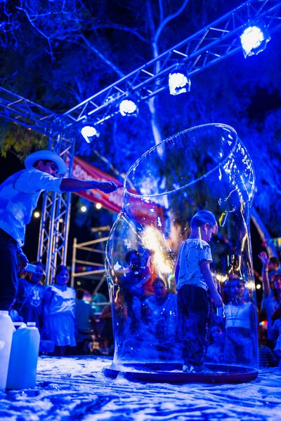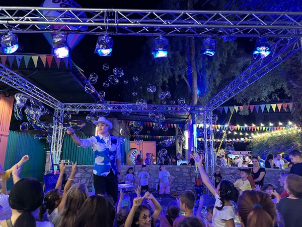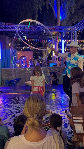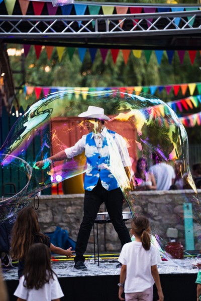 Η ομάδα μας, γνωστή για την καινοτομία και τη δημιουργικότητά της, αποφάσισε να φέρει μια εντελώς διαφορετική εμπειρία στο φεστιβάλ, προσφέροντας ένα Bubble Show που συνδύαζε μαγεία, διασκέδαση και εκπληκτικά εφέ με σαπουνόφουσκες. Το Bubble Show που παρουσιάσαμε ήταν κάτι παραπάνω από μια απλή επίδειξη σαπουνόφουσκας. Ήταν μια εκπληκτική παράσταση που έκανε το κοινό να χαμογελάσει, να ενθουσιαστεί και να συμμετάσχει στην υπέροχη ατμόσφαιρα του φεστιβάλ.