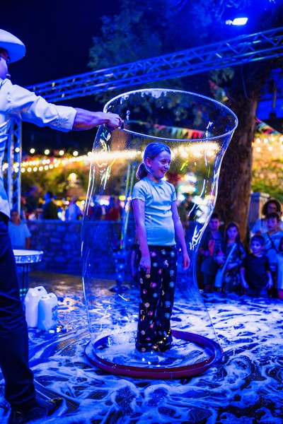 Η Loukos Events προσέφερε μια απόλυτα διαδραστική εμπειρία που ενσωμάτωνε τη μαγεία του θεάματος με την ψυχαγωγία του κόσμου, κάνοντάς το πιο διασκεδαστικό για όλους. Οι επισκέπτες του φεστιβάλ είχαν την ευκαιρία να απολαύσουν το Bubble Show και να ανακαλύψουν τη χαρά της δημιουργίας και του παιχνιδιού με τις φυσαλίδες, δημιουργώντας αξέχαστες αναμνήσεις και στιγμές γέλιου.