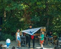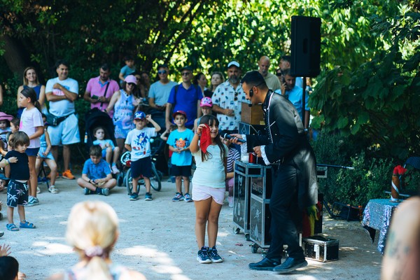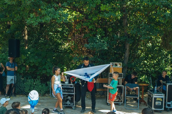 Το πλούσιο πρόγραμμα περιλάμβανε θεατρικές και καλλιτεχνικές δράσεις που γέμισαν τον χώρο με φαντασία και δημιουργικότητα. Η ηθοποιός και σκηνοθέτης Κάρμεν Ρουγγέρη μάγεψε το κοινό με τα παραμύθια της, ενώ το Πανελλήνιο Σωματείο Θεάτρου Σκιών παρουσίασε μια ξεχωριστή παράσταση Καραγκιόζη, χαρίζοντας γέλιο και συγκίνηση.