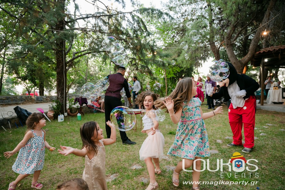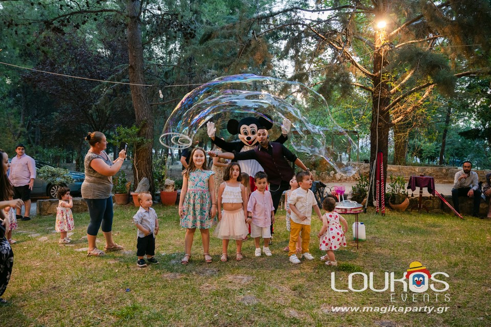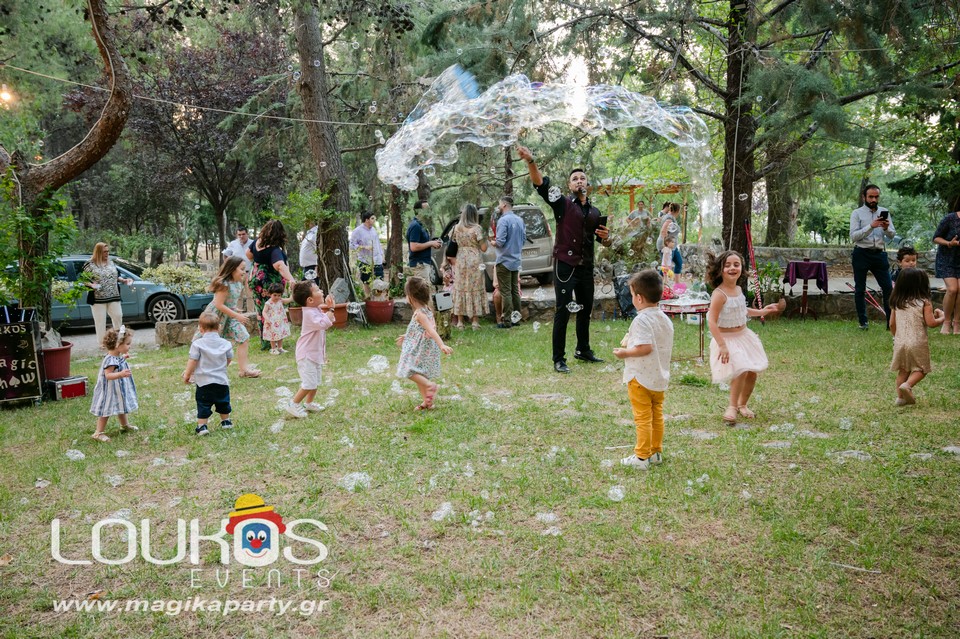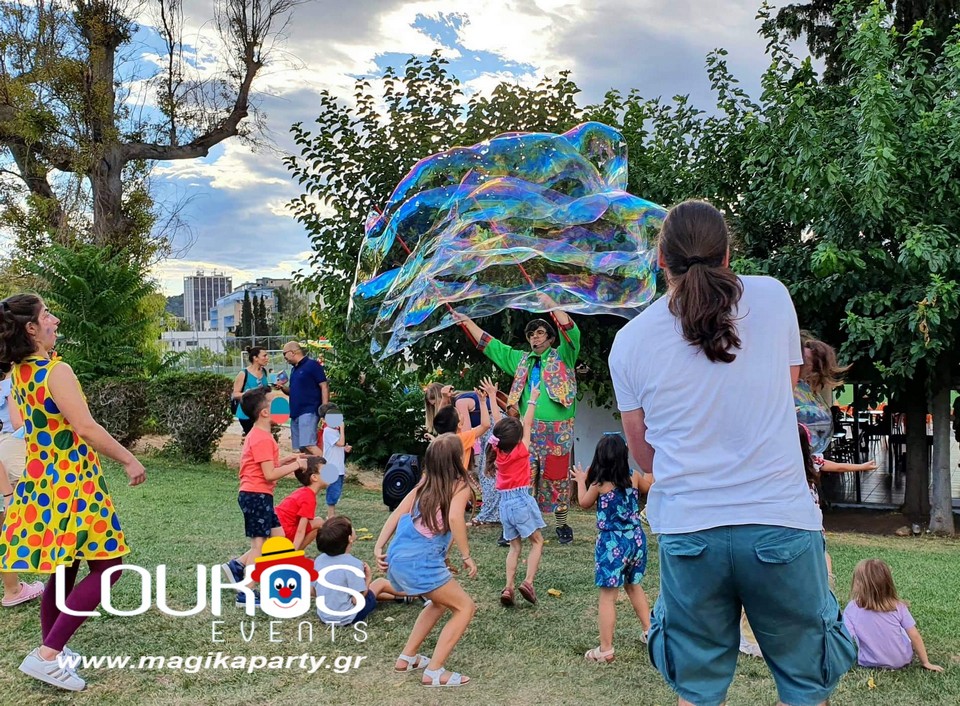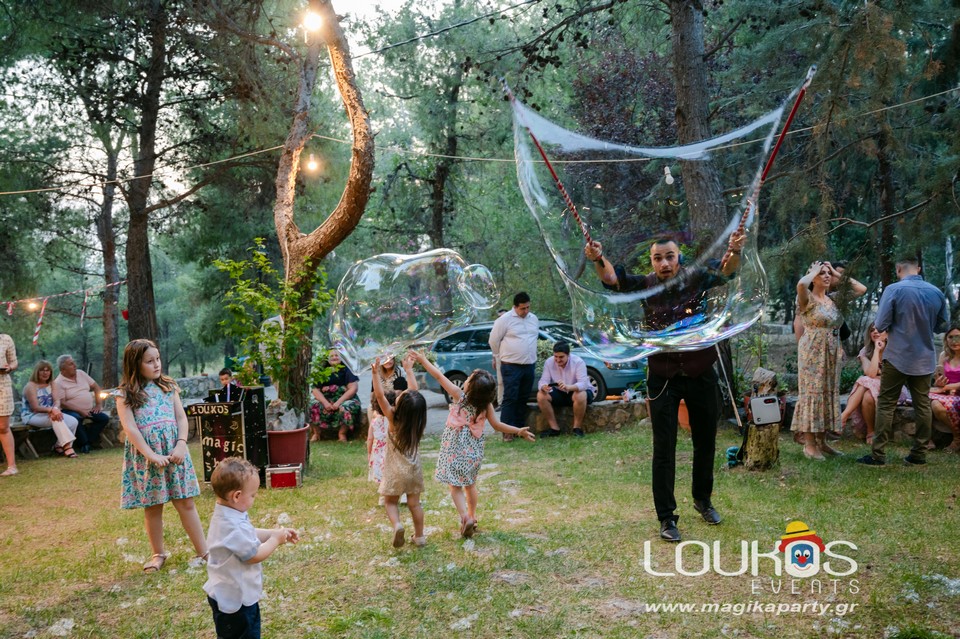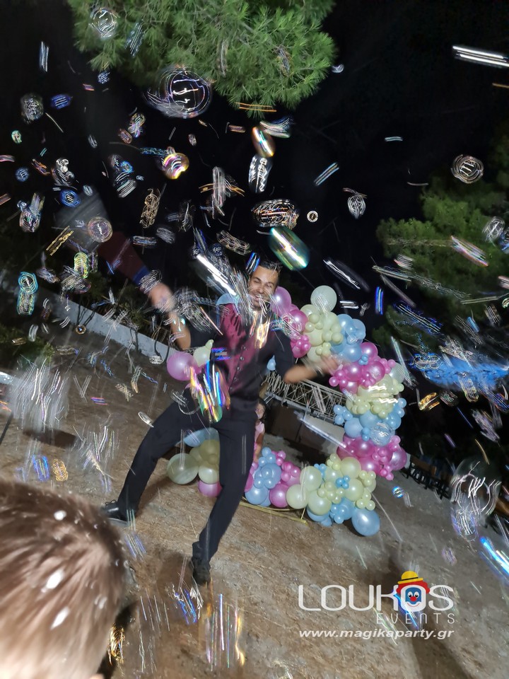 Ο εξειδικευμένος Μάγος θα δημιουργήσει γιγάντιες σαπουνόφουσκες που θα αιωρούνται στον ουρανό και ο χώρος σας θα μεταμορφωθεί σε ζωντανό παραμύθι.