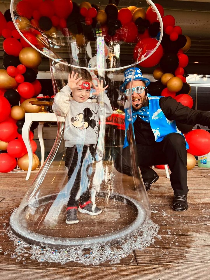 Χάος με σαπουνόφουσκες, χορογραφία με φούσκες και εντυπωσιακά μαγικά κόλπα από τον ταχυδακτυλουργό.